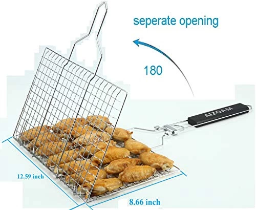 - ❷ LARGE Grilling SURFACE – The grill basket provides a generous cooking surface of 12.6 x 8.6inch to accommodate foods for 2-3 people .