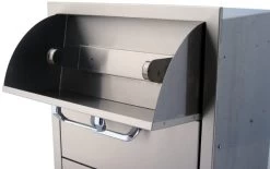The BBQ Island 260 Series triple storage drawer with paper towel dispenser is a fully enclosed BBQ grill access storage drawer featuring 18 gauge 304 stainless steel construction, stainless handles and solid frame. This triple drawer will be a great addition to any outdoor kitchen. Fully enclosed with solid frames and full length, heavy duty drawer glides – it operates smoothly. This drawer is crafted from high quality 304 stainless steel with a solid frame and strong drawer glides. The drawer tracks are full length, galvanized steel with smooth action ball bearings that allow the drawer to open and close easily. The welds are ground and blended with a brushed finish creating a complete look. This unit will be shipped with a white vinyl covering to protect surfaces during fabrication, handling and installation. Once it is in place, peel off the protective vinyl to expose the luster and quality of your superior American made outdoor kitchen unit. The260 Series feature chrome plated handles that will give your outdoor kitchen a sleek look, update to the 300H handles for a more modern look. The doors/drawers come flush on a box frame.