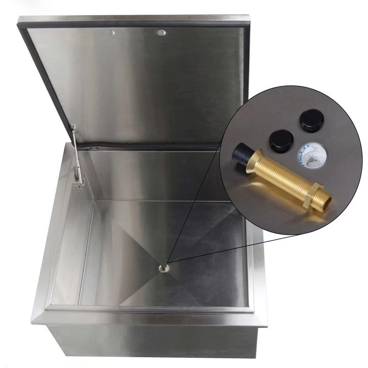 This BBQ Island Drop-In Ice Bin Cooler with Condiment Holder is just what your outdoor kitchen needs to entertain by always having ice cold drinks at hand. This 20 Gauge all #304 Stainless Steel Ice Bin and Cooler is built to last a lifetime and will be the perfect addition to any outdoor kitchen. The condiment holder and lid remove easily to convert to an open cooler. A threaded drain hole plug is included.