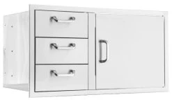 BBQ Island 260 Series – 39-Inch Triple Drawer & Roll-Out Trash/Propane Bin On Right Combo