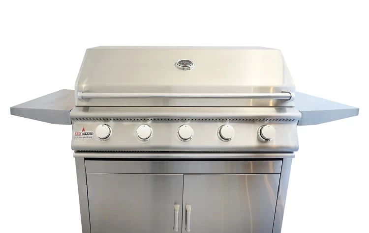 The BBQ Island 40″ – 5 burner natural gas grill is the biggest grill for the buck that you can get. By putting it on a cart, it is mobile to move freely around your deck or patio and can easily be stored out of the weather. BBQ Island grills have full ceramic briquettes and 14,000 BTU, U shaped burners that really deliver controlled heat and will rise to meet any backyard grilling challenge!