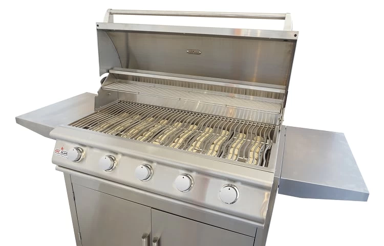 The BBQ Island 40″ – 5 burner propane grill is the biggest grill for the buck that you can get. By putting it on a cart, it is mobile to move freely around your deck or patio and can easily be stored out of the weather. BBQ Island grills have full ceramic briquettes and 14,000 BTU, U shaped burners that really deliver controlled heat and will rise to meet any backyard grilling challenge!