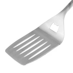- THE BEST TOOLS FOR EVERY TASK: Grilling should be fast, easy and enjoyable! Our spatula with built-in bottle opener will allow you to enjoy a cold beer or two while tailgating or for chillin when grillin at a backyard party. The spatula has a sharp steak knife serrated cutting edge. Add flavorings with the silicone basting brush! The scalloped head locking tongs make it safer and easier to grill, turn, flip & serve food on and off the BBQ. A meat fork with sharp long tines for skewering meats.