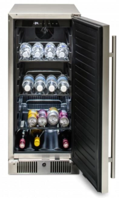 This Blaze 15” Outdoor Refrigerator features a slim design for small spaces and lends a sleek look no matter the setting. Despite its space-saving design, this low-profile fridge can still hold up to 74 cans of your favorite beverages! White LED lighting, meanwhile, ensures you can find your favorite drinks, day or night. To top it all off, the unit’s heavy-duty, 304-grade stainless steel construction and 1-year limited warranty give you confidence in your new outdoor appliance.