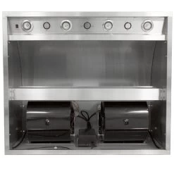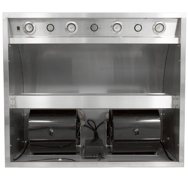 Ventilating an outdoor cooking space can be challenging due to the increased amount of smoke produced by outdoor cooking equipment. The Blaze Outdoor Vent Hood pairs a deeper hood canopy with a powerful twin motor system to effectively clean the air from the grilling area. The industry leading 36 inch depth of the Blaze Hood protrudes further over the cooking space capturing more smoke when the grill lid is opened. The twin 1000 cfm motors create roughly 2000 CFMs of pull which averages 60% greater suction when compared to stronger outside hoods on the market today. The Blaze Outdoor Vent Hoods powerful suction and increased depth allows an installation further away from the cooking surface. This offers both an easier view of the cooking area along with increased comfort for the chef.