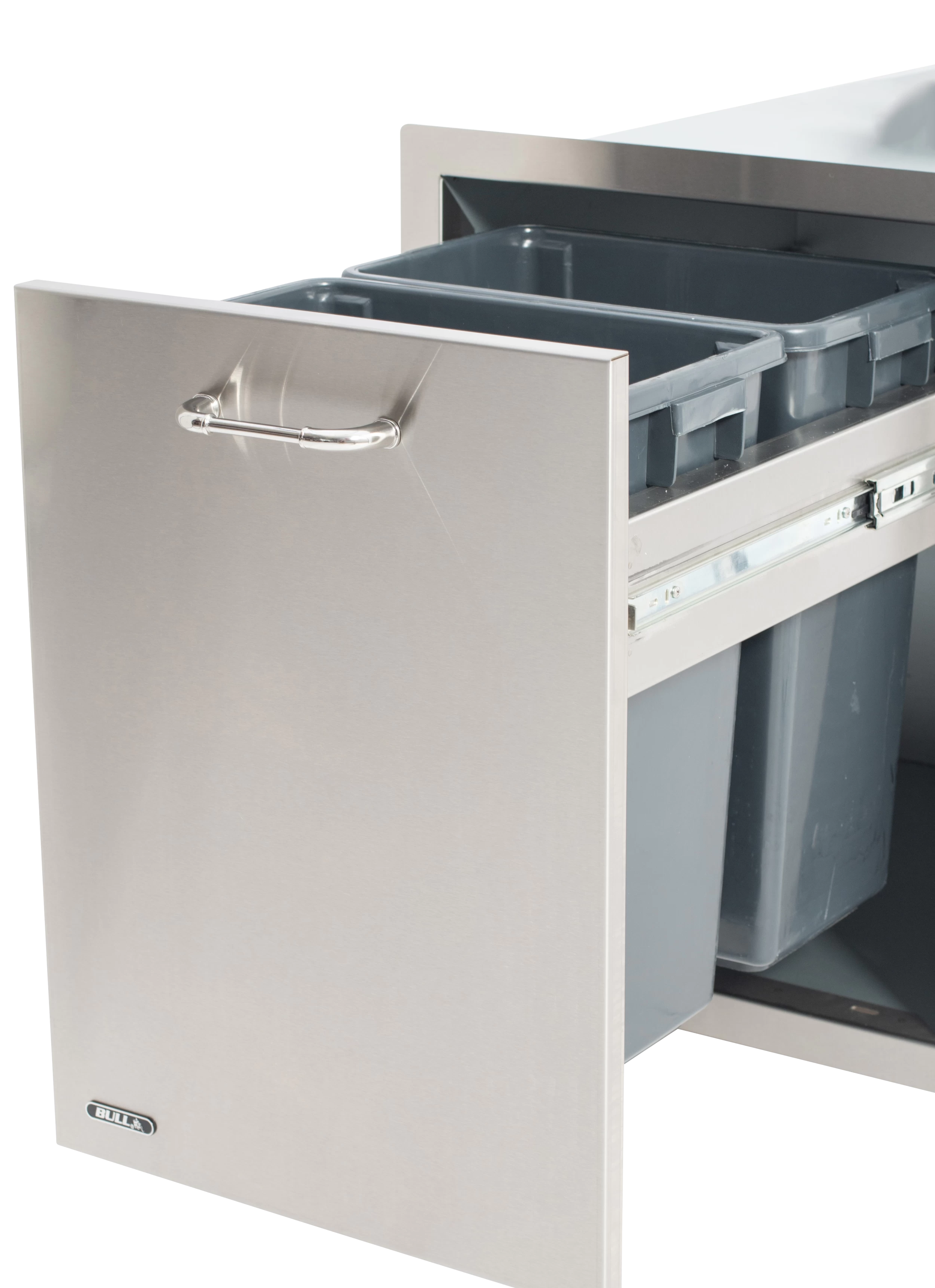 The Bull Double Trash/Recycle Drawer offers a stylish solution to separate your general waste from your recyclable material. Constructed of 304 stainless-steel, the Bull Double Trash/Recycle Drawer comes with two, 32-quart cans and features a set of heavy-duty slide rails that have a soft closing feature. The Bull Double Trash/Recycle Drawer is a perfect addition to any outdoor kitchen and matches the rest of Bull’s award-winning grill and outdoor kitchen equipment.