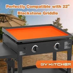 Details: BYKITCHEN Silicone Griddle Mat for 22 inch Blackstone Griddle, Blackstone Silicone Griddle Cover, Blackstone 22 Griddle Cover Lid, Black Stone Grill Cover for Blackstone Adventure Ready 22 Griddle, Flat Top Blackstone Accessories for 22 inch Griddle, All-season Use Outdoor Silicone Griddle Protective Blackstone Grill Cover Mat