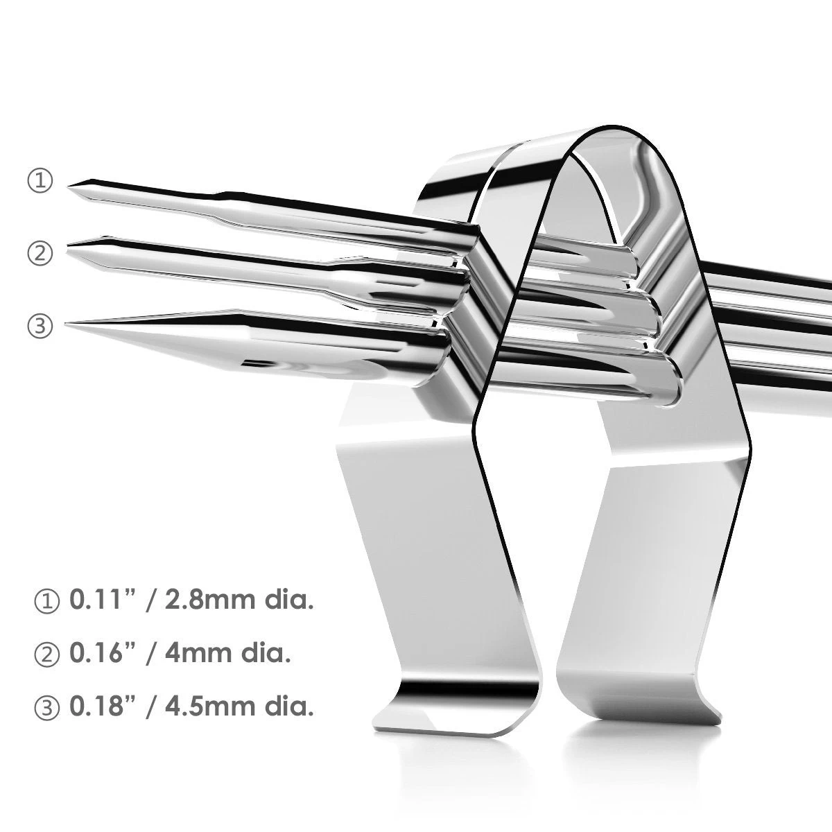 - With 3 different hole sizes to optimize most meat thermometer probes