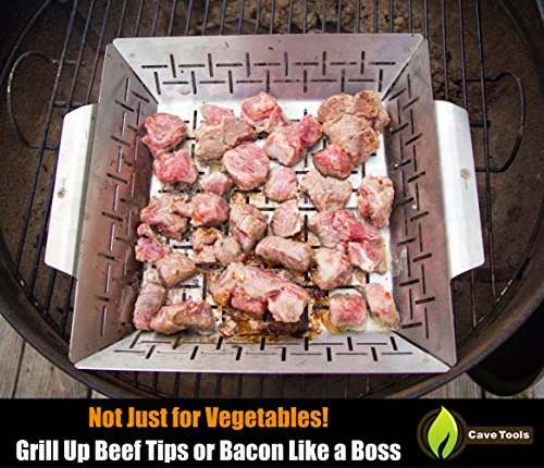 - The Perfect BBQ Basket for Small Foods – Grilled Veggies, Fruits, Shrimp, Fish, Meats and any other food that would normally fall through the grates now has DELICIOUS BARBECUE FLAVORS – Great gift idea for mom or dad