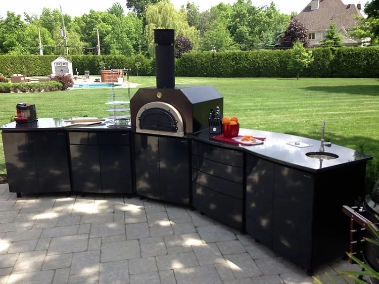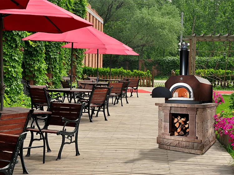 The insulation blanket increases heat retention and the ovens unique shape creates a flameroll which pulls the flame horizontally across the top of the dome and then vertically back down the side, creating higher temperatures for superior cooking. This design allows the oven to reach temperatures in excess of 1,000° F. The CBO-750 uses three methods to cook efficiently, convection, radiant and conduction. The CBO-750 includes a pizza peel, stone brush and infrared thermometer gun. Like all Chicago Brick wood-fired brick ovens, the 750 countertop model is made right here in the USA.