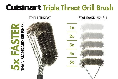 - 3 brushes in 1: the triple threat grill brush features 3 brushes in 1, giving you Triple the amount of cleaning in a third of the time of a traditional grill brush.