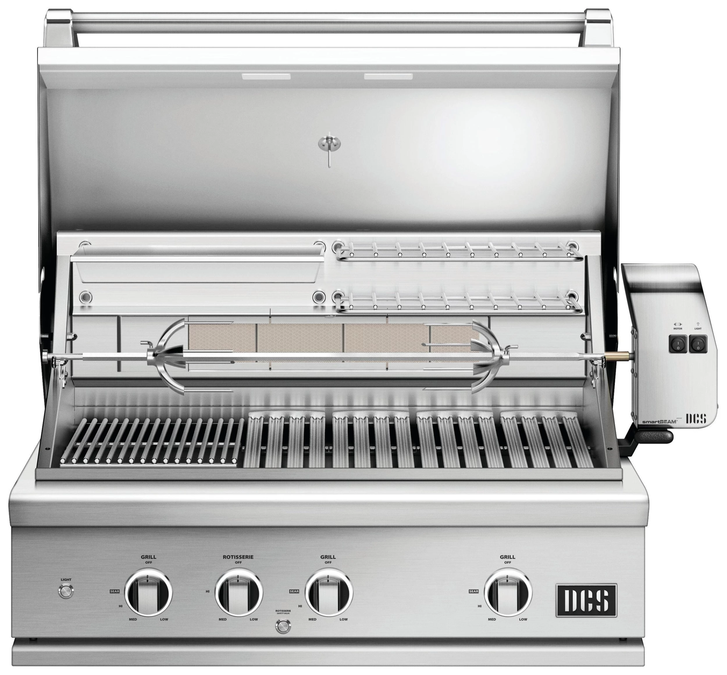 Heavy Duty Infrared Rotisserie – An infrared rotisserie burner provides controlled searing heat up to 14,000BTU. The heavy-duty motor easily turns a 50lb load, ideal when cooking for a big crowd. The rotisserie rod is conveniently stored under the drip pan handle.