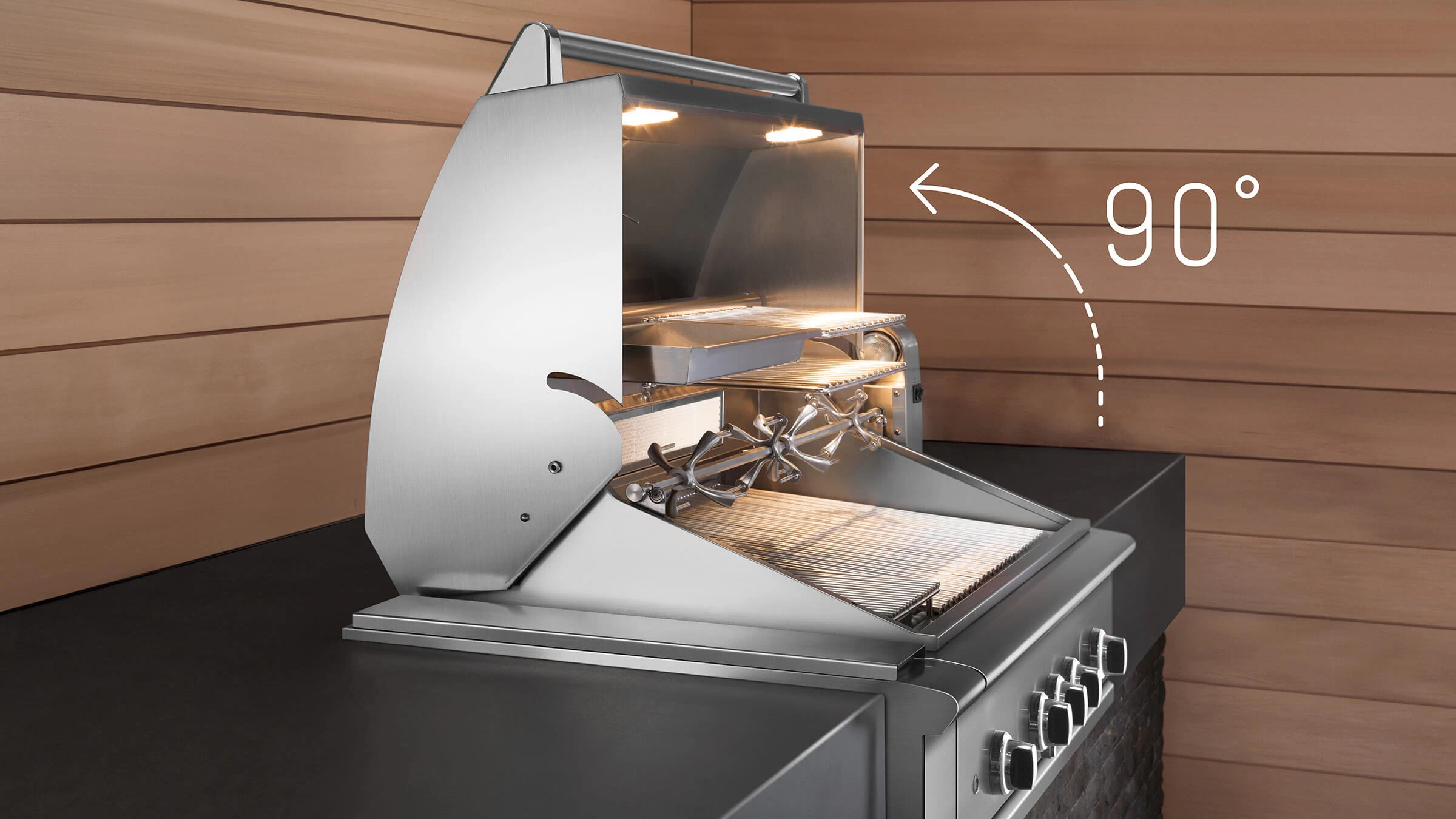 Easy Lift Hood – With extra space under the hood for extra large food items, the hood can be smoothly opened, using one hand, to a full 90° for better access and visibility when cooking.