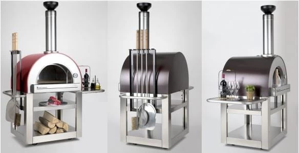 Pronto in Italian means “ready” and this oven is ready for succulent culinary adventures. The Pronto series of ovens are a great choice for those looking for a compact yet full featured oven. Available as a counter top model for outdoor kitchens, or with a stainless steel cart for free standing situations. Large enough for two personal sized pizzas. Easy to move around your patio with 2 fixed wheels and 2 swivel wheels when you need to get out of the wind. Multiple shelves and a tool holder that adjusts for long or short oven tools provide a complete cooking and entertaining solution. Two layers of ceramic insulation over the dome and under the hearth keeps the heat in for superior cooking performance. Available in copper or red with a textured powder coated paint that will keep it looking great for many seasons of great outdoor cooking and entertaining.