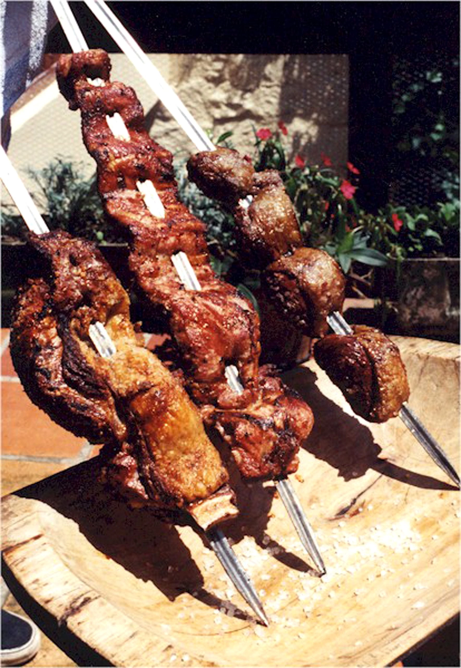 Details: “Grill larger quantity food portions with these commercial grade restaurant Brazilian-style BBQ shish Kebab (kabob) skewers. Larger than other average BBQ shish Kebab (kabob) skewers, these skewers feature an extra long heavy Gauge stainless steel blade & secured in a strong riveted wood handle, perfect for grilling larger quantities of your favorite shish Kebab (kabob) meats, whole medium size chickens, roasts & other foods perfect for the open flame.”