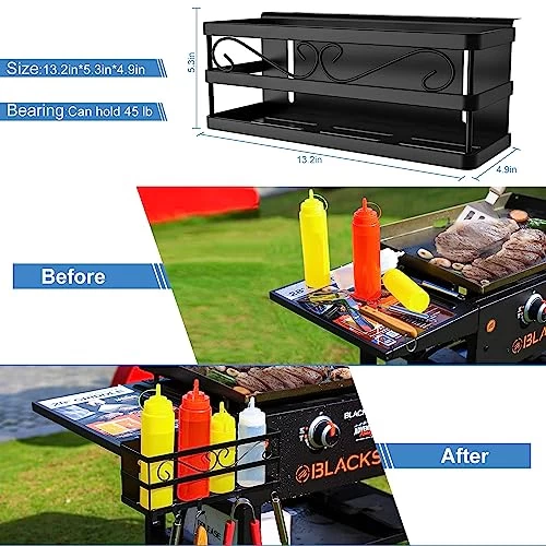 - 【Easy Installation & Drilling-free】Install Blackstone Caddy on your Blackstone Griddle Grill in 4 easy steps and 1 minute, no need to open holes, saving time and effort, such a thoughtful design, so you have more time to focus on grilling.