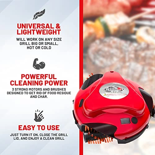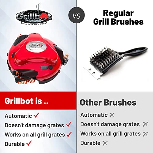 - World’s First Automatic BBQ Grill Cleaner Brush – Say goodbye to the hassle of cleaning a dirty grill. Cook all you want and let our grillbot automatic grill cleaning robot with Nylon brushes do all the dirty work! Use this grill brush for outdoor grills for easy, fuss-free, hands-free grill cleaning!
