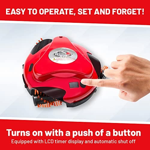 - Easy to Use, Set & Forget Grill cleaner and Scraper – Simply place it on the grates, hit start, and let Grillbot BBQ grill brush do its magic. Grillbot will beep to let you know when it’s done. Plus, this robotic nylon grill brush for outdoor grilling has a push-button start with an LCD timer and alarm display