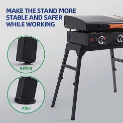 - FULLY TOUCH THE GROUND-Unlike the old plugs, the inserted balancer make all four legs of the grill stand to fully touch the floor, prevent the griddle from toppling over due to the original little pivot points.