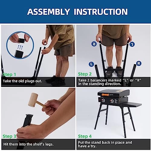 - FOLLOW THE STEPS-As the four legs of 22” blackstone griddle stand itself are not exactly the same, each of the balance insert is also designed slightly differently. Please install it according to the steps shown in the pictures to avoid poor results.