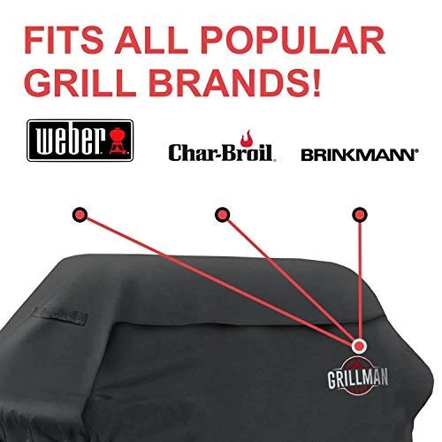 - FITS ALL POPULAR GRILL BRANDS – Own a Weber, Char Broil or Brinkmann BBQ grill and looking for a high-quality, heavy-duty cover? Our extra-wide design ensures your GrillMan cover will fit the most popular brands. Grill cover dimensions are 58″ Length x 24″ Width x 48″ Height.