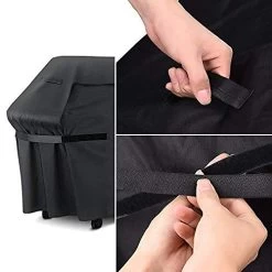 •More Bonus Features. For snug fit and secure purpose, the cover is equipped with Velcro tie down strap at each side of the cover. For easy on and off, there is a padded heavy-duty handle at each side. The handles can be also used for storing/hanging purpose while grilling.