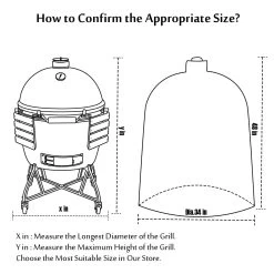 Details: 34 DIA. Kamado Grill Full Cover Specification Material: Heavy Duty 600 D Oxford fabric Dimension: 26 Diameter x 45 H Fits:Mudium Big Green Eggs in a nest with the shelves Features Cover mesh vent for airflow Padded handle Not fade over time. For one who has a kamado in home,it’s not just an old friend, it’s part of the family! We know that’s how you feel about your Kamado grill – and rightfully so. It’s been the hit of one too many backyard gatherings with family, friends, neighbors, co-workers and perhaps even a few unknown faces. You did a lot of homework investing countless hours, days and perhaps even weeks and months before selecting that perfect kamado grill for your backyard entertainment. It only makes sense that your concern to protect your investment has brought you here in your continued investigation to learn the facts about choosing it’s perfect companion piece – a kamado cover to protect such a valuable asset. Your attention to detail is well noted. Smoker covers are an absolute necessity for serious grillers such as yourself! Don’t let the sleek and stylish exterior of them fool you – they’re durable enough to keep your kamado grill protected all year long.This feature also minimizes ballooning and keeps the cover from blowing off of your kamado grill. Our kamado grill covers have an buckle and strap at the bottom to keep the cover securely in place.