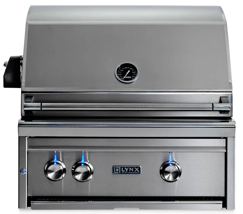 The Lynx 27 Inch Professional propane gas grill comes standard with two 25,000 BTU ceramic burners totaling 50,000 BTUs. The 470 square inch primary and 215 square inch secondary cooking surface give this grill a 685 square inch cooking surface. The Professional grill line has advanced features such as balanced hoods, seamless welded exteriors, internal halogen lighting and control knobs illuminated by blue LEDs.
