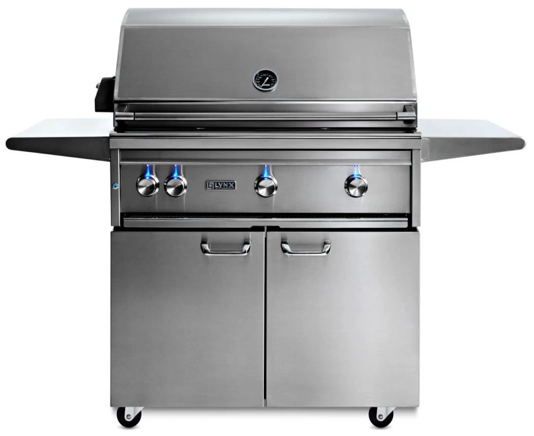 The three ProSear burners push 69,000 BTUs of total cooking power on the grilling surface. An advanced ignition system uses a hot element positioned directly above the burner port for reliably safe start-up and a large capacity smoker box allows you to add extraordinary flavor to all the things you like to grill. Over the burner, an array of fixed position ceramic briquettes ensures precise, even heat distribution to the 640 square-Inch main cooking grid while a secondary grid provides an additional 295 square-inches for a comprehensive 935 square-inches of overall grilling space. The Lynx L36ASFR-2-LP also has a dual-position internal rotisserie with heavy-duty, 3-speed motor and rear infrared burner to raise your cooking options to their full potential. Lynx made sure you have easy access to all these fine cooking features by adding lift assist and a handle that rotates fluidly as you raise and lower the hood. Like to grill into the night? The adjustment knobs on the control panel sport blue LED accent lights for precise control and ultra-bright internal halogen lights illuminate the grilling surface eliminating guess-work.