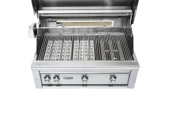 Experience the finest in outdoor grilling performance with the superior craftsmanship and innovative features found in this 36-inch propane gas grill from Lynx. The quality begins outside with gleaming, high-grade 304 stainless steel that is seamlessly welded to eliminate areas where grease and moisture can collect. A patented design deflects wind and allows the grill to vent properly, stabilizing critical surface temperatures when cooking in windy conditions.