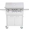 Lynx 54-Inch Freestanding Propane Gas Grill w/ Infrared Trident Burner And Rotisserie L54PSFR-2-LP: Bring your outdoor grilling to new levels with the superior craftsmanship and innovative features found in this 54-inch natural gas grill from Lynx. The quality begins outside with gleaming, high-grade 304 stainless steel that is seamlessly welded to eliminate areas where grease and moisture can collect. A patented design deflects wind and allows the grill to vent properly, stabilizing critical surface temperatures when cooking in windy conditions.