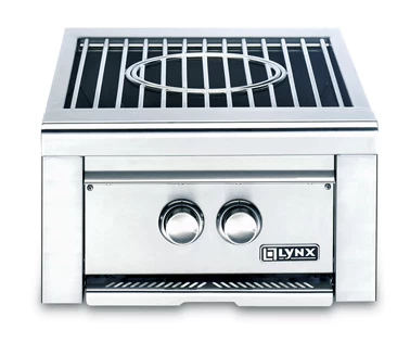 The Lynx Power Burner features a cast brass burner rated at 46,000 BTU and dual rings that can be operated independently for maximum heat control and exceptional cooking performance. Removable center grate feature allows this unit to accommodate a commercial style round-bottom wok. Replace the center grate and the unit is ready for an oversized stockpot or pan. Also features blue LED control illumination, fully extendable drip pan, removable stainless steel cover and glow-coil ignition system. This item is designed to plug in to a Lynx Grill in order to provide power for lights and ignition.