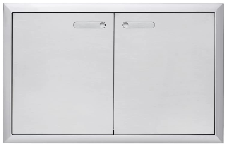 Lynx Ventana 36 Inch Double Access Doors provide a high quality outdoor kitchen component to complete your ultimate outdoor BBQ paradise. This unit features a heavy 16 gauge 304 stainless steel construction with smooth welded joints for a blend of style and durability that will stand up to the elements in any climate. The professional-style door handle and heavy duty latch provide a secure closure to keep the contents safely within. The entire line of Lynx Professional outdoor kitchen equipment features the same polished stainless construction for a matching stylized look to transport your kitchen outdoors.