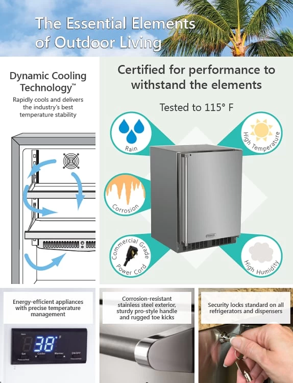 This Marvel 15″ Outdoor Clear Ice Machine utilizes a specialized process that removes impurities during the freezing process to avoid altering the taste of any beverage it touches, the result is crystal clear gourmet ice that chills beverages perfectly and preserves their flavor. Marvel’s 30iMT-SS-F Ice Machine produces 34 lbs. of clear ice cubes, and stores up to 30 lbs. in a 24 hour period. The stainless steel ice cutter sizes and shapes cubes that cool your beverage quicker while taking up less room in your glass.