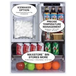 The first of its kind, the Marvel Outdoor Refrigerator Freezer packs beaucoup features into one dynamic undercounter cold storage solution certified for outdoor performance. Capable of producing up to 13 pounds of ice with the add-on Crescent Ice Maker accessory, it features precise temperature management of the refrigerator and freezer compartments independently, MaxStore roller-glide utility bin to store loose items and cantilevered, adjustable shelving system to adapt the storage configuration as needed. The Dynamic Cooling Technology is tested and proven to cool nearly two times faster than other models, a performance benefit especially important for outdoor kitchens.