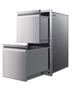 A variety of cabinet options provide two drawers to four drawers. Available in both 15” and 21” widths, these units will fit most any outdoor kitchen application. There are even cabinets which incorporate the grill controller for space savings and convenience, as well as an option with a trash compartment.