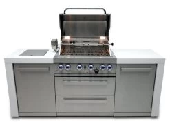 All Mont Alpi Deluxe outdoor kitchens are propane ready but can be easily converted to natural gas with the additional Mont Alpi Natural Gas conversion kit. With its white granite surfaces and waterfall sides, this grill is the perfect combination of class and convenience. Delivered fully assembled, it’s the ultimate grill for any outdoor cooking enthusiast.