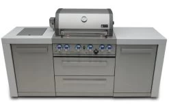 All Mont Alpi Deluxe outdoor kitchens are propane ready but can be easily converted to natural gas with the additional Mont Alpi Natural Gas conversion kit. With its white granite surfaces and waterfall sides, this grill is the perfect combination of class and convenience. Delivered fully assembled, it’s the ultimate grill for any outdoor cooking enthusiast.
