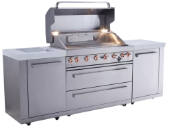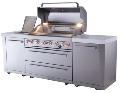 Discover the ultimate outdoor cooking station with the Mont Alpi 805 Island Grill. All the essential functions condensed into this grill will certainly have all the neighbors green with envy. With the top of the line 304 grade stainless steel and infra red burners you will be crafting culinary perfection for you and your loved ones to enjoy