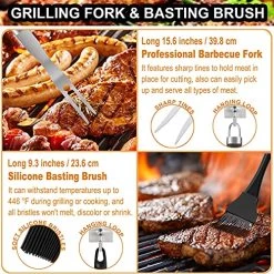 - 【Durable & Exceptional Quality】The heat resistant long-handled smoker grill accessories are made from extra thick and solid professional grade stainless steel, more durable and safe than other bbq utensils as they will not bend, crack or rust after extended use. Coming with perfect heft, each essential of the grilling set stainless steel can behave well in your grilling, which will take your grilling experience to a whole new levels.