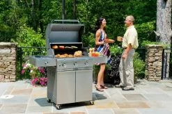 Turn out great tasting steaks and chops on this three-burner, full-sized grill loaded with features any cook would love–integrated electronic ignition, halogen lights and an 18,000 BTU side burner that can boil 15 quarts of water in 18 minutes. It’s built to last with premium materials and uses SABER’s advanced infrared technology to give you maximum performance and value for your investment.