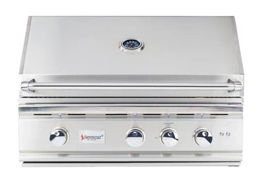 Boasting with features is the Summerset TRL 32″ Natural Gas grill w/ Rotisserie and Lights. This grill is the considered BBQ Island Best Bang For Your Buck. Packed with luxury features, the TRL series is a workhorse. Constructed from 304 grade stainless steel, this luxury grill offers a level of quality usually reserved for commercial style grills. This 32″ built-in natural gas grill features four 16 gauge U-shaped stainless steel burners rated for 18,000 BTUs each. The easy-clean ceramic briquette system protects the burners from food drippings, eliminating flare-ups and also to ensure the grill maintains an even heat across the entire grilling area. The 8mm cooking grates are also made from stainless steel for longevity. Expand your cooking options with the 15,000 BTU rear rotisserie and IR back burner, the heavy-duty rotisserie kit can hold up to 50 pounds. The TRL32-NG also includes a reliable flame thrower ignition with a manual flash tube backup that does not require batteries or electricity. Interior halogen lights and blue LED control knob illumination allow you to grill and entertain into the evening with ease. A large, easy to read temperature gauge is mounted on the hood, and the hood has a double lining, which helps retain heat and protect against heat discoloration.