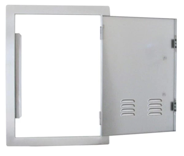 304 stainless steel storage single barbecue access door, available in size 17-inch by 24-inch and 14-inch by 20-inch horizontal and vertical. This model can be installed either left or right swing. Keep your BBQ station neat and tidy.