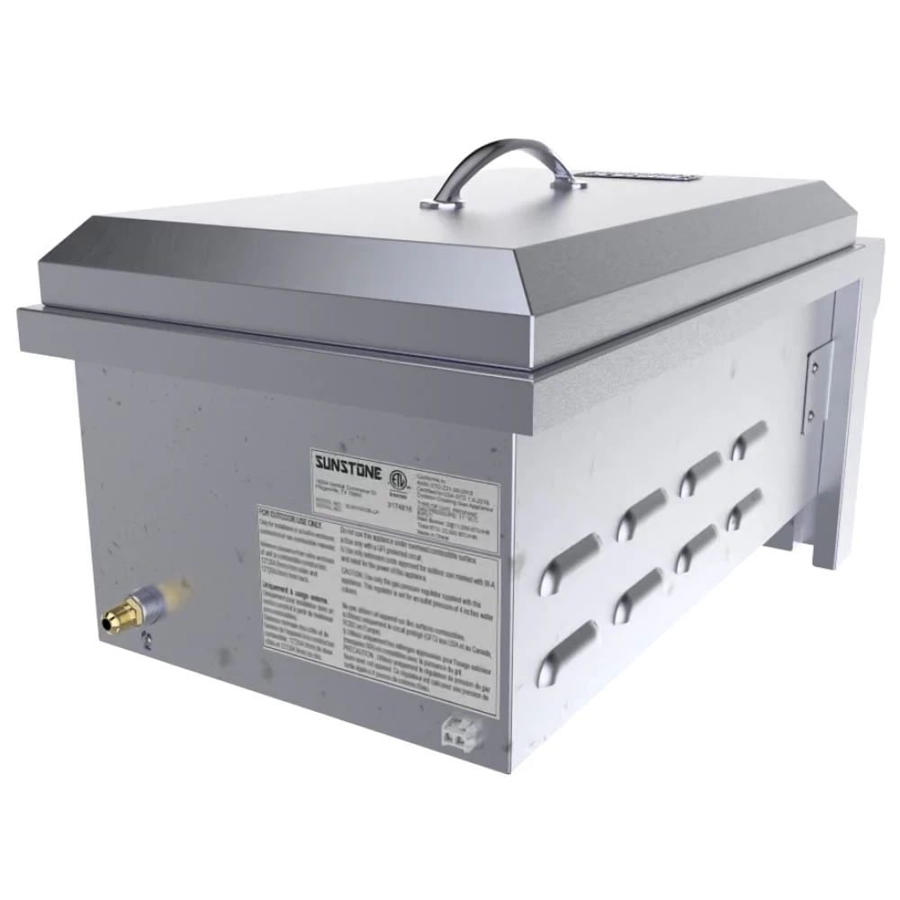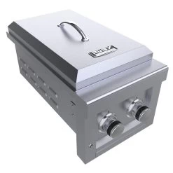 Sunstone® ruby seriesâ„¢ double slide-in burner features two heavy-duty unto 15,000 BTU versa burnersâ„¢ – totaling 30,000 BTU’s – all brass burners with a lifetime warranty, and all 18 gauge 304 stainless steel construction, complimenting this with solid 3/8 in. 304 stainless steel raised cooking grates. The double slide-In burner features high-searing heat, enough for the largest wok cooking, or stir-fry pan cooking, with its adjustable all surround flame, and raised cooking grates provides better airflow around the burner for superior performance. This double burner is uniquely designed with a front LED accent light, all polished accents and a fully detached cover, allowing the use of larger cooking pans and 180 degrees of access. The ignition is an easy reliable piezo valve ignition, with two large rubber gripped gas valve knobs which work well as a heat buffer.for Anyone seeking to create the perfect outdoor kitchen, and need the right double side burner to compliment your large grill, this will be the perfect one for you .