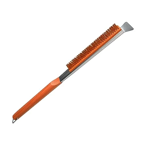 SupMaka Pizza Oven Brush, 22” Pizza Stone Brush – Grill Cleaning Brush With Scraper, Grill Brush Wood Handle & Brass Bristles, Pizza Oven Accessories For Outdoor BBQ, (Vibrant Orange)