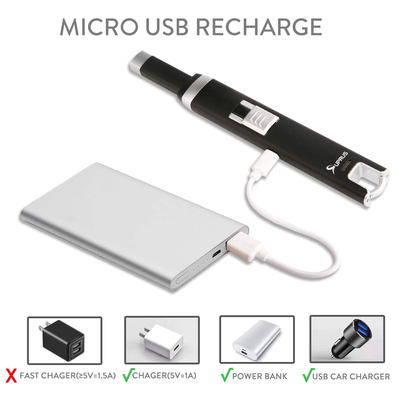 - USB RECHARGEABLE(CORD INCLUDED):You can charge Candle Lighter with a Standard Micro USB cable in any powered USB port.1-1.5 hour fully charge(update battery),lighter can be used more than 1000 times per charge(light 80 times based on 8 seconds per light!)and the battery can be charged more than 500 times.If you don’t use the product very often, please recharge the Battery about 1 hours continuously for every 3 months to protect the life of the Battery.Please do not us fast chager adapter.