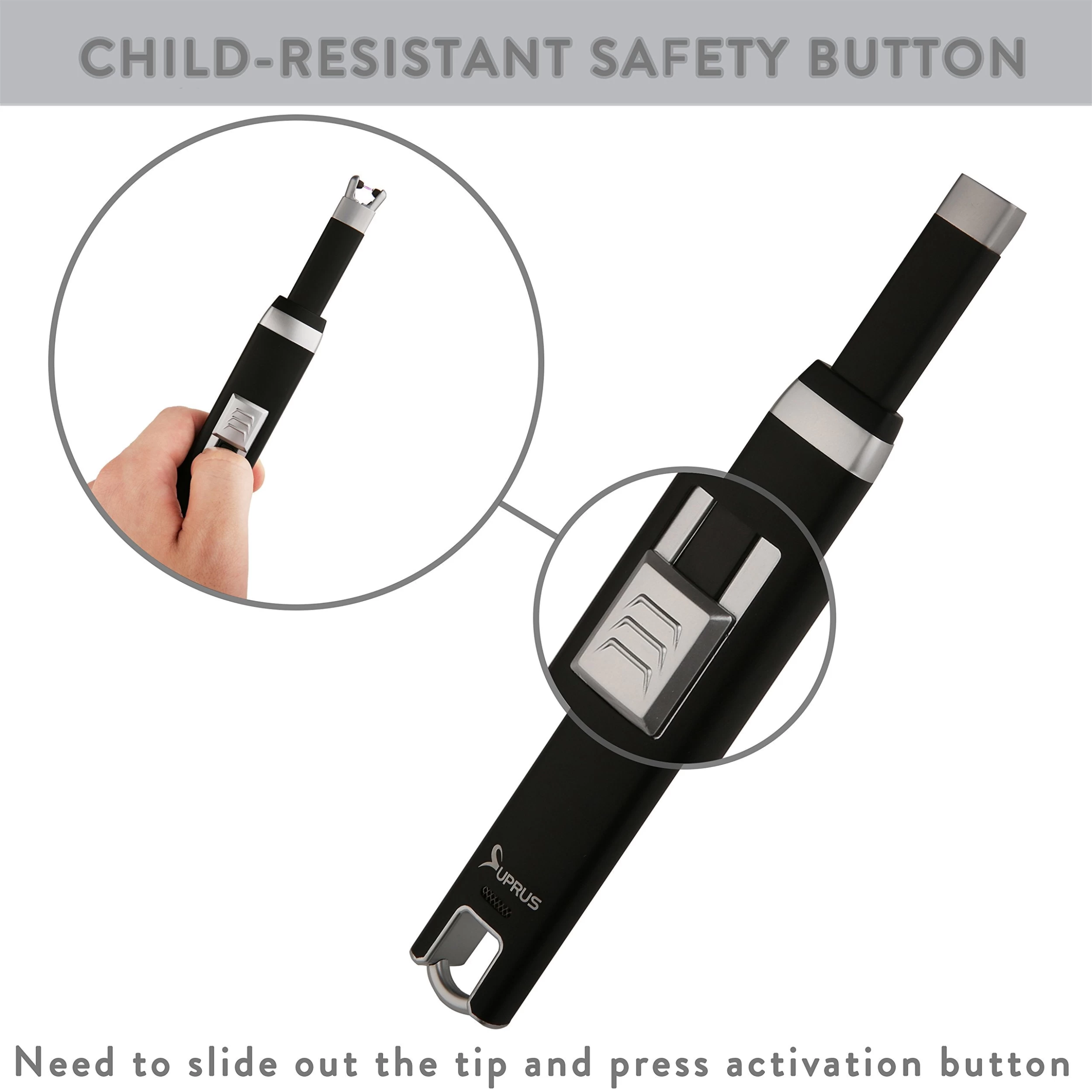 - SAFE TO USE:Child-Resistant Slide-Out Tip Design to conceal the switch when not in use.When ready to light,slide out the tip and press the activation button.If heating time is too long Automatically Power-Off System will cut off the power.