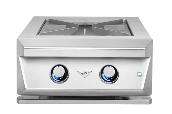 The Twin Eagles Natural Gas Power Burner has an over sized cast brass, 2-Ring burner and is the most powerful residential Power Burner, reaching 70,000 BTUs. The reversible commercial cooking grate on the heavy duty model is constructed of 8 mm stainless steel welded plates.