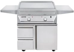 The Teppanyaki Griddle is available as freestanding unit by integrating either 30” Outdoor Gas Grill base (TEGB30-C or TEGB30SD-C) for a unique portable option which beautifully matches your grill and accessories. Match either product with the grill base of your choice to create the custom solution that works best in your outdoor kitchen. Features include heavy duty casters with front brakes for easy maneuverability and locking, and fold down side shelves with tool holders. The soft closing doors and self latching drawers feature flush handle design with hi-polished accents.